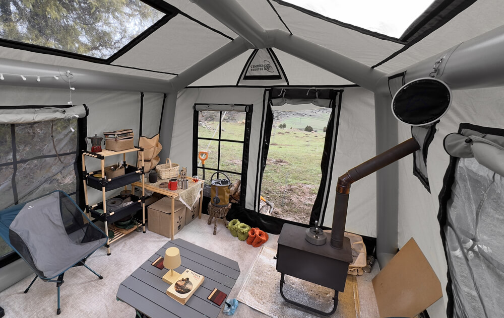 Fireproof Stove Mat (EXTRA OPTION): A fireproof mat designed to allow you to safely use a stove inside the tent, isolating the heat from the stove and protecting the ground. This adds extra safety and comfort during cold weather.