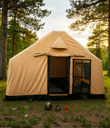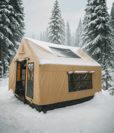 Non-Flammable Stove Mat (EXTRA OPTION): Designed to safely use a stove inside the tent, the non-flammable mat insulates the heat from the stove to protect the floor. This offers extra safety and comfort in cold weather.