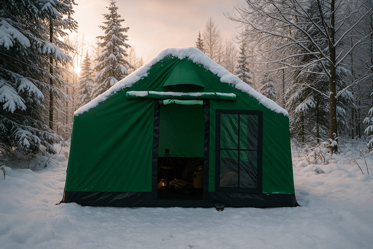 Non-Flammable Stove Mat (EXTRA OPTION): Designed to safely use a stove inside the tent, the non-flammable mat insulates the heat from the stove to protect the floor. This offers extra safety and comfort in cold weather.