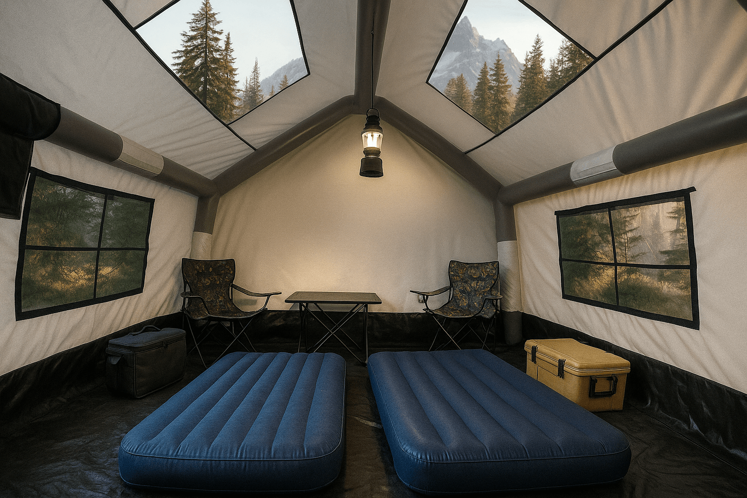 High-Performance Inflatable Structure – With inflatable beams, your tent is ready to set up within minutes. Enjoy your holiday with a strong and sturdy structure. Safety is our top priority, and our inflatable tents undergo rigorous testing.