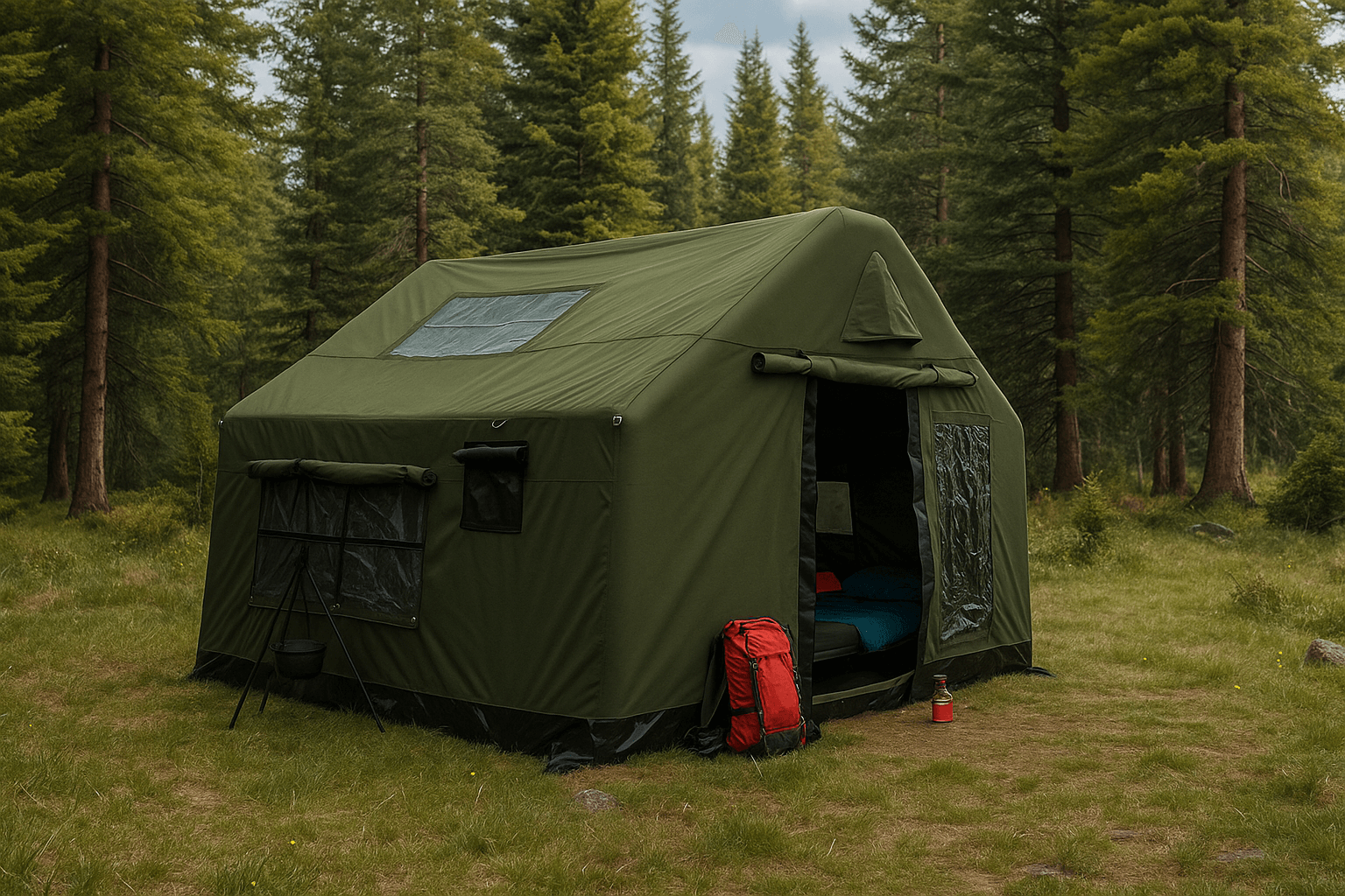 Rechargeable Digital Air Pump (EXTRA OPTION): A rechargeable digital air pump designed to inflate your inflatable tent quickly and effortlessly. Its compact design, USB charging capability, and precise pressure control help you set up your tent in the best possible way.