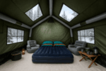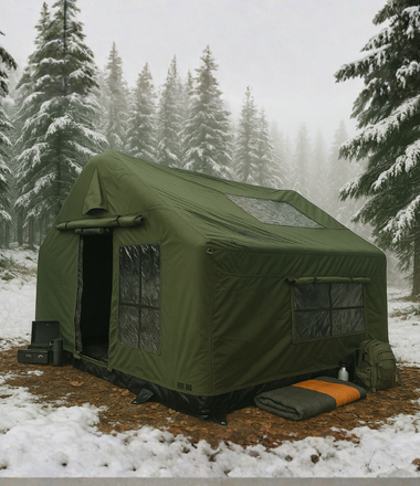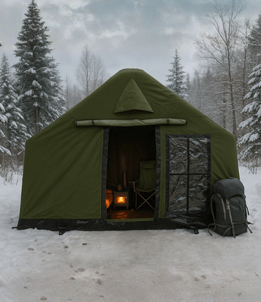 Non-Flammable Stove Mat (EXTRA OPTION): Designed to safely use a stove inside the tent, the non-flammable mat insulates the heat from the stove to protect the floor. This offers extra safety and comfort in cold weather.