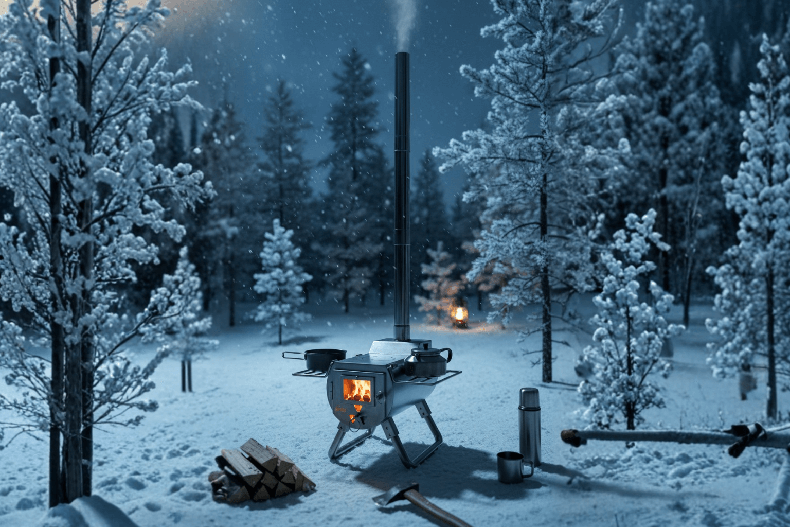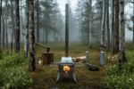 Combining heating and cooking functions in a single unit, this wood-burning camping stove is ideal for camping, tents, bushcraft, and glamping use.