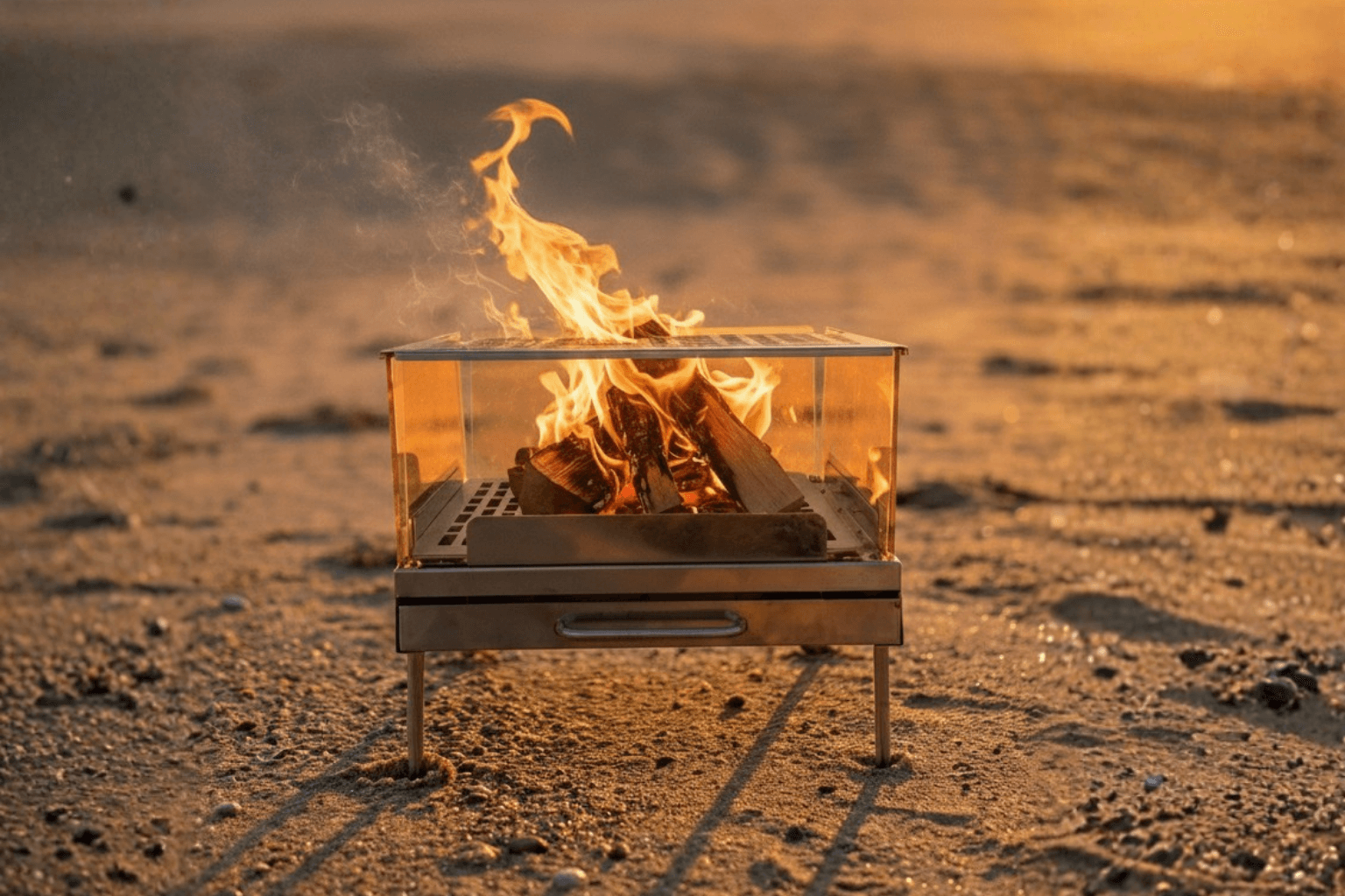 Home Camping Equipment Camping Stoves Stainless Steel Cube FireBox with Glass